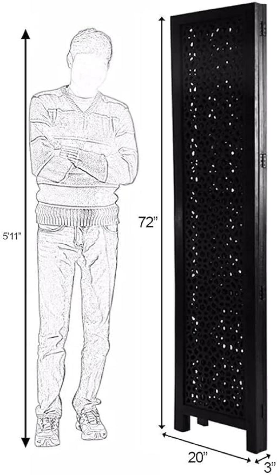 Wooden Room Partition and Folding Privacy Screens for Bedroom Home Office Room Divider Room Partition (6 Feet 4 Panel Each Panel Size 72X20 Inch)((Dark Brown)