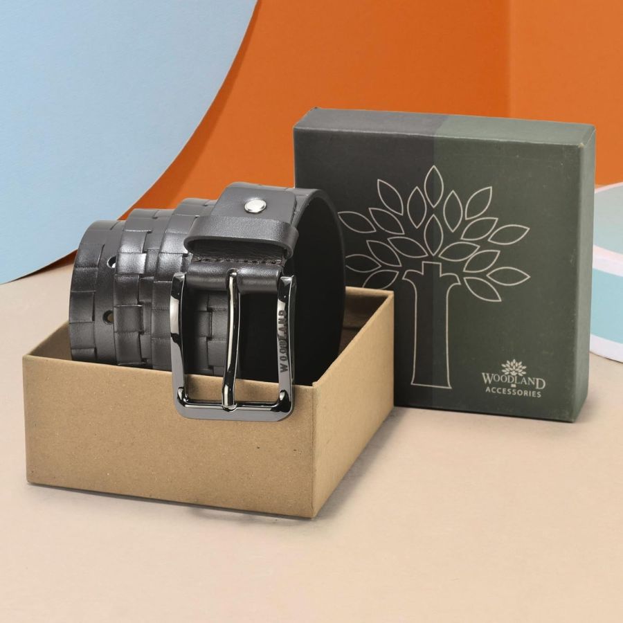 Premium Quality Leather: The belt for Men is made from 100% genuine leather. Crafted with genuine leather, the Woodland Belt for Men ensures durability, longevity, and a sophisticated look. Stand out with this high-quality accessory.