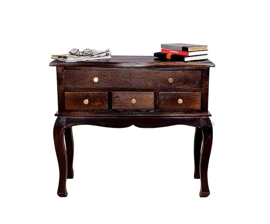 Woody Furniture Solid Wood Multipurpose Three Drawer Table Study Table |Wooden Laptop Table| Solid Wood Table for Computer | Work from Home Table | Study from Home Table (Natural Rough Finish)