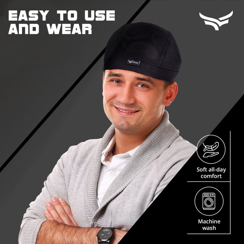 4 way stretch fabric: Xtrim skull cap with 4-way stretch fabric snugly fit all head sizes. Xtrim skull cap for men fits over your ears, or can be folded above the ears also.