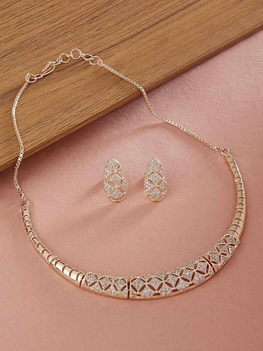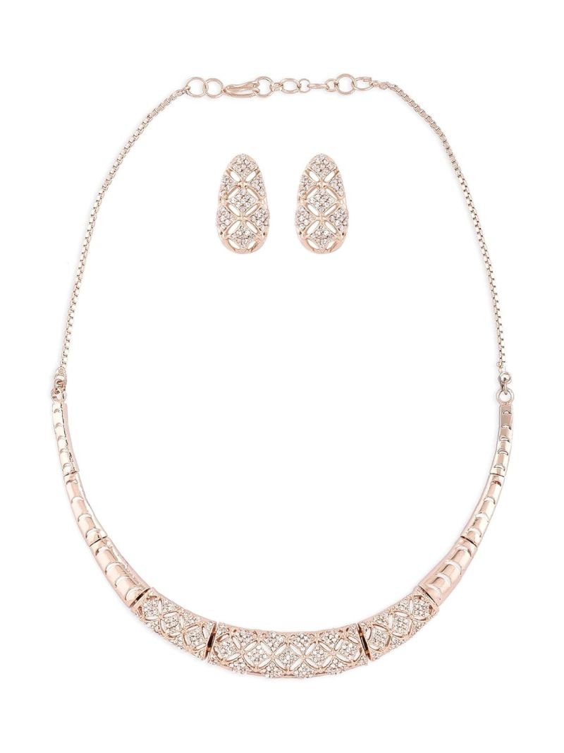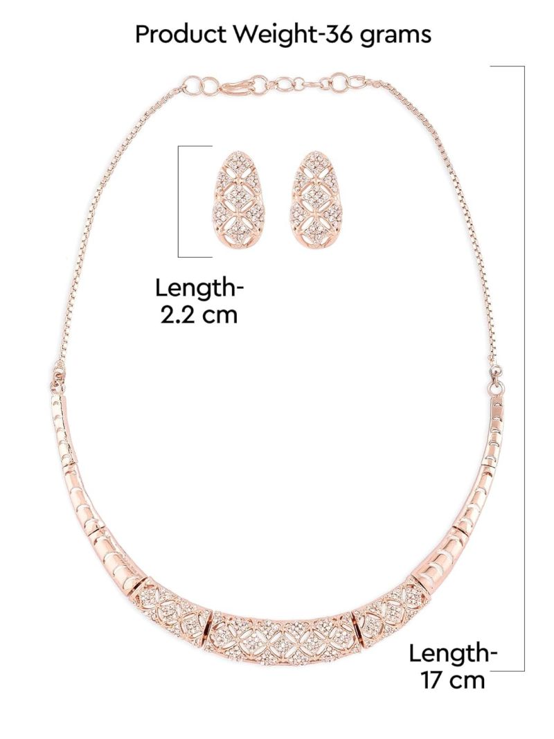 ZAVERI PEARLS Rose Gold Cubic Zirconia Party Bling Necklace & Earring Set For Women-ZPFK15274