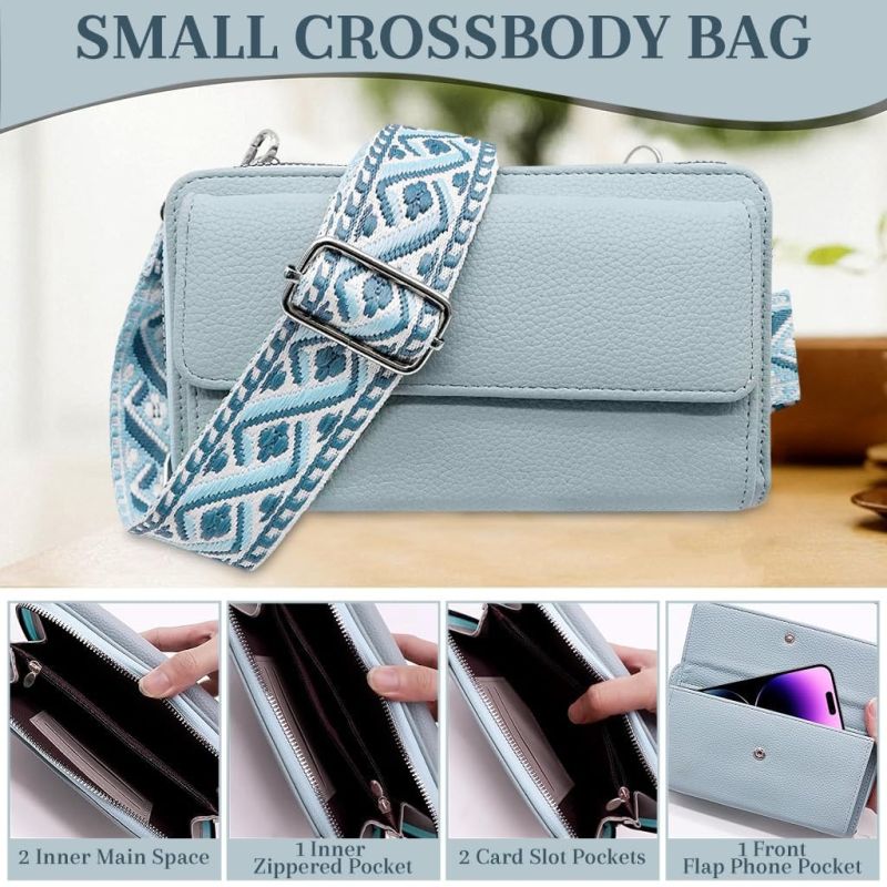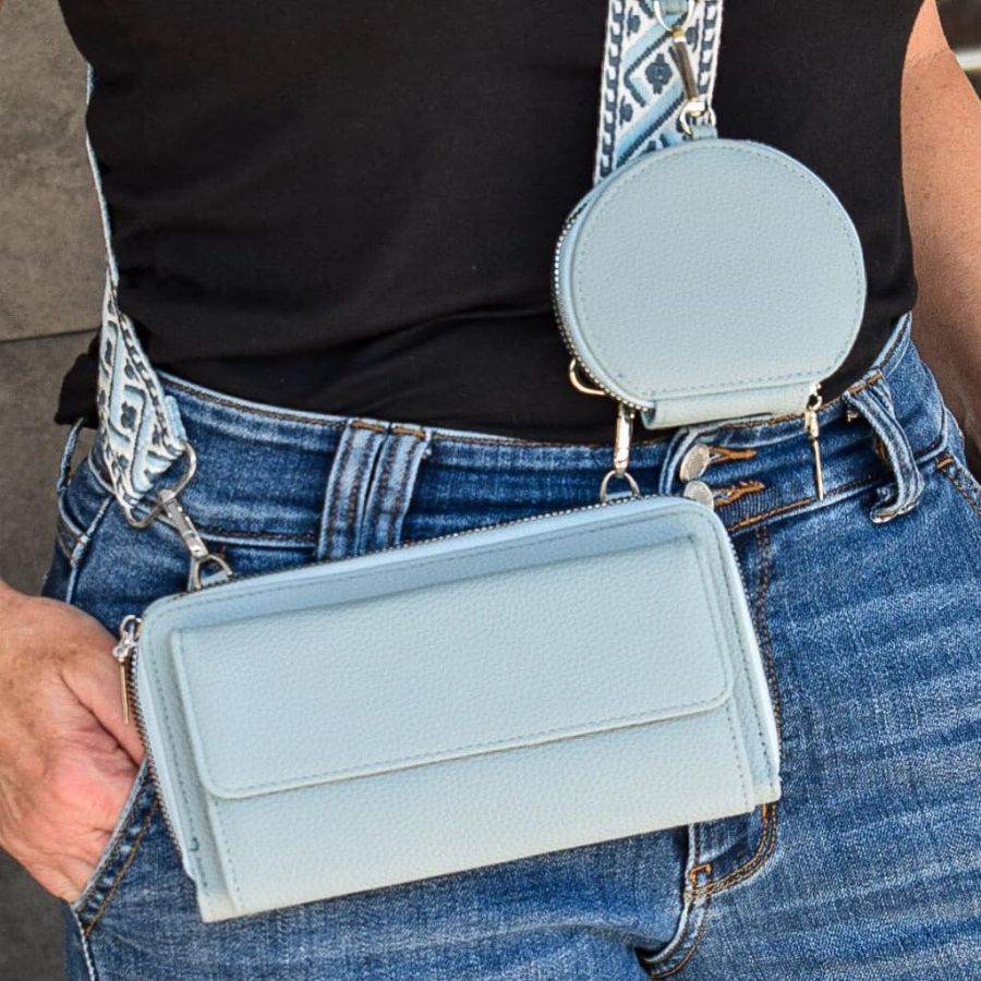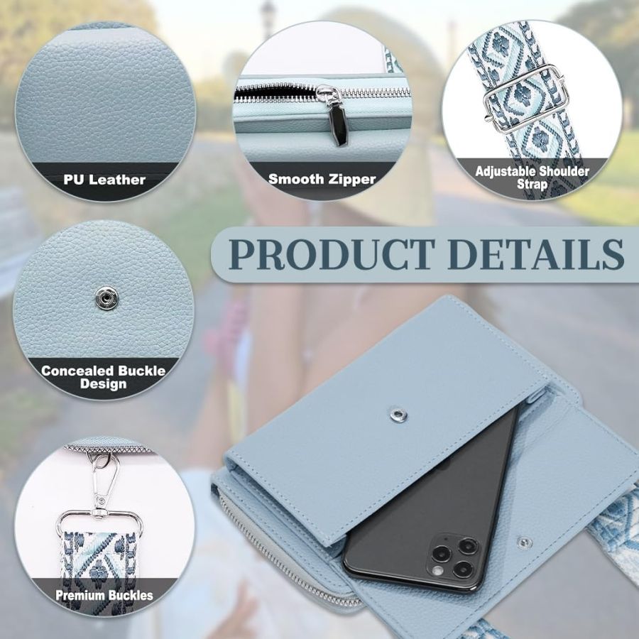 TRENDY BLUE PRINT DESIGN WITH ADJUSTABLE STRAP: Features a beautiful light blue color with stylish nylon webbing strap. The detachable strap allows multiple carrying options to match any outfit.