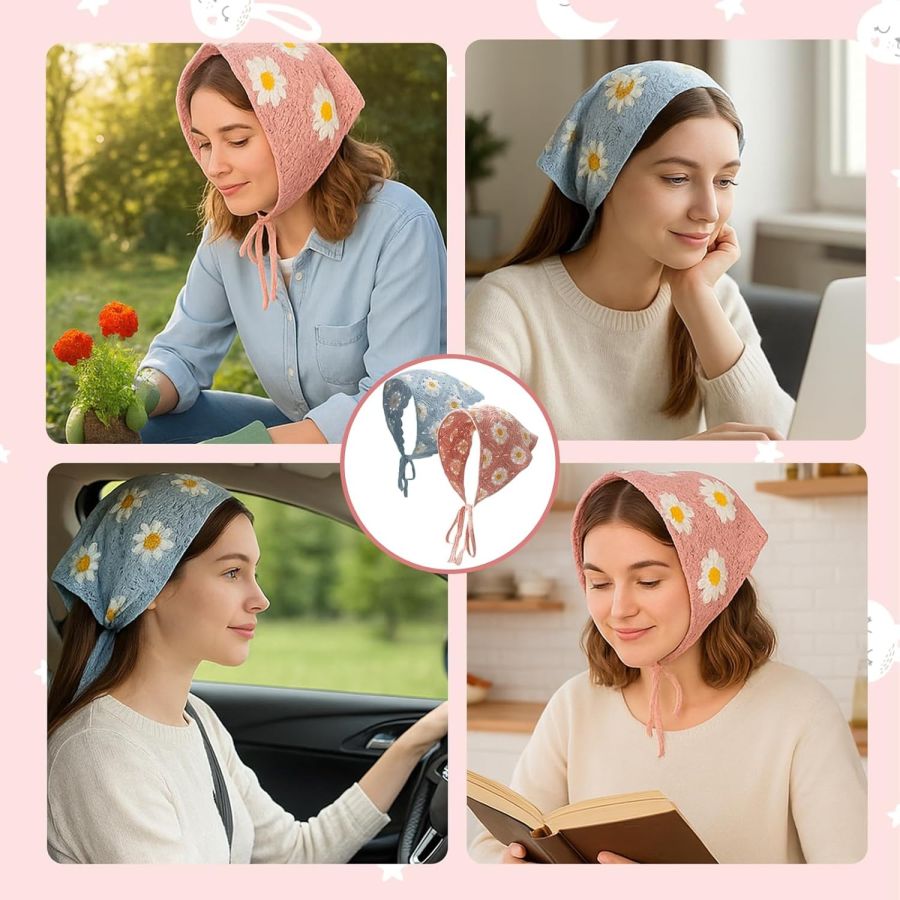2 Pcs Head Scarf for Women, Bandanas for Women, Head Coverings Comfy Beach Headwraps Hair Scarf Gift for Women, Girl