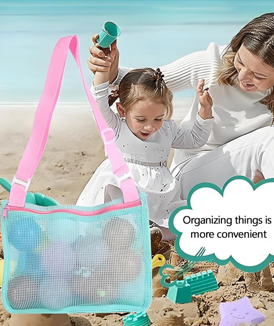 Stylish and Practical: Available in attractive colors, this beach toys for kids combines style and functionality; Its mesh design offers items stay clean and dry, making it a must-have for beach outing.