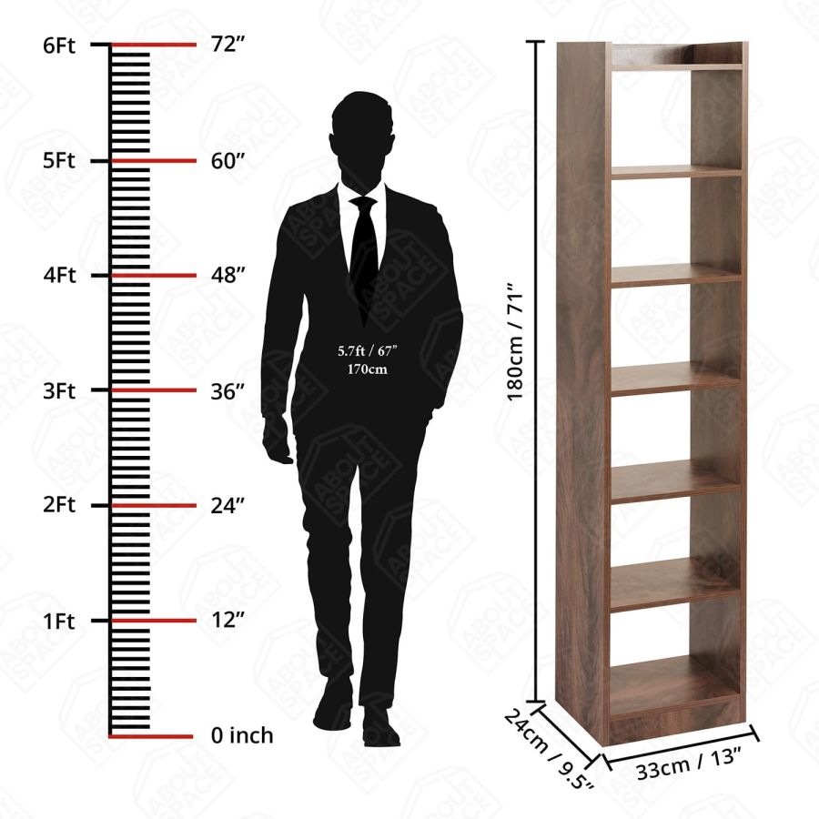 MATERIAL & DIMENSION: The shelf for books is made of engineered wood for stability & durability with foot pad to avoid scratches and wobbling. The open book shelf wooden for storage measures L 33 x B 24 x H 180 cm