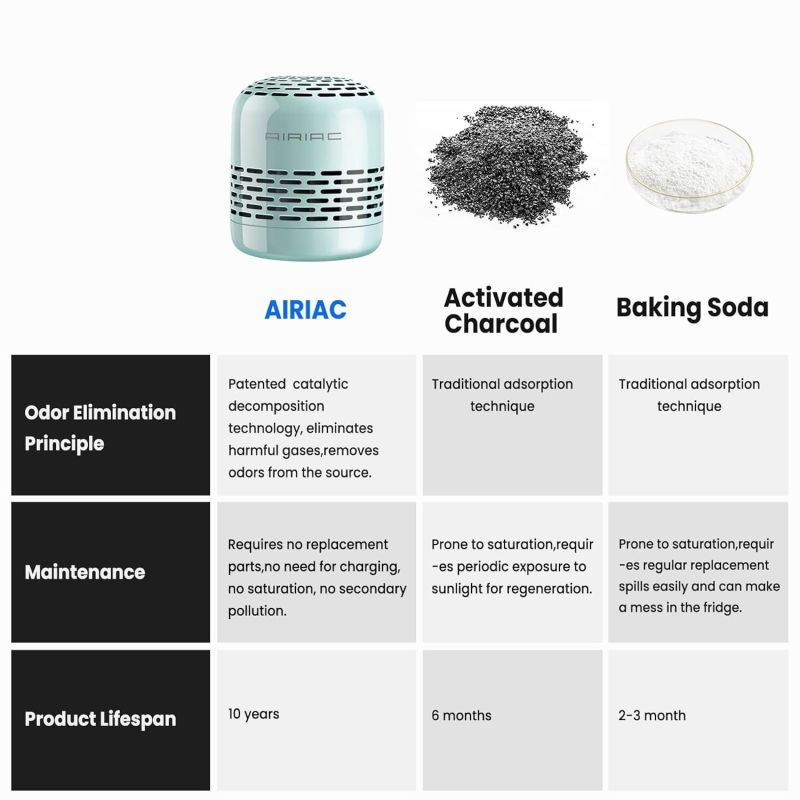 AIRIAC Fridge Deodorizer,10-Year Refrigerator Deodorizer Odor Eliminator,Replaces Baking Soda for Fridge and Freezer Absorber Charcoal Bags