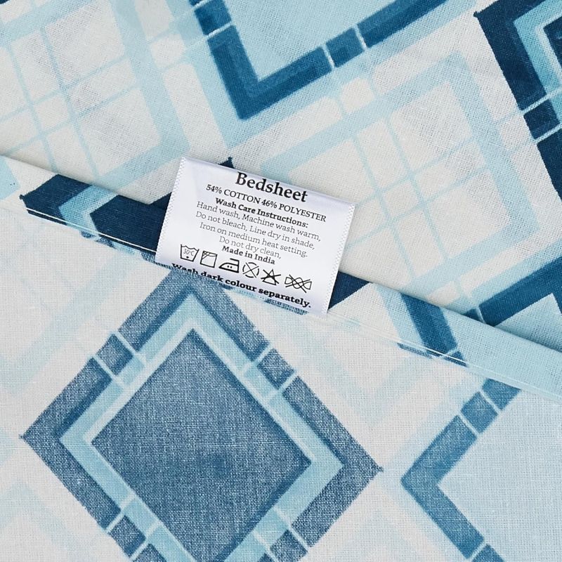 Amazon Brand - Solimo Geometric 144 TC Cotton King Size Bedsheet (Aqua)
