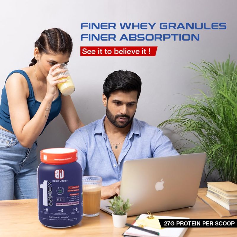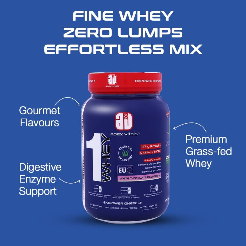 Premium Grass-Fed Whey Blend: Apex Vitals 1 Whey contains a blend of grass-fed whey protein sourced from Europe, delivering a smooth, natural texture without guar or xanthan gums. Its high-quality flavoring offers an enhanced taste experience.