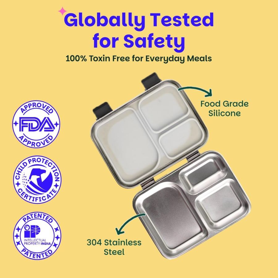 Safe & Non-Toxic Materials: The Basil bento box for adults is made from premium food-grade 304 stainless steel, FDA-approved food-grade silicone, and BPA-free materials. Every bite from our Steel tiffin box guarantees peace of mind.
