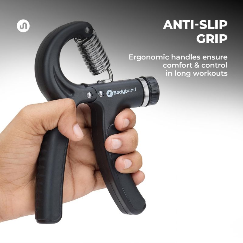 HAND GRIP WITH COUNTER : Bodyband Hand Gripper with the added rep counter, is the best hand grip to strengthen your forearm, wrist & finger strength and their muscle grip. Exercise using the Bodyband Hand Grip with Counter and build arm grip & strength consistently, and at a steady rate. Incredibly suitable for everyone, men, women, teenagers and anyone interested in fitness, with an adjustable resistance.