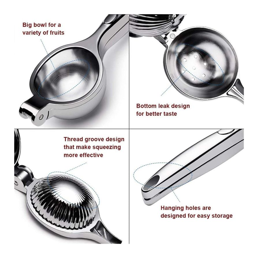 Sturdy Heavy Duty Metal Bowls: This stainless steel lemon press/lime press can juice limes, large lemons and even small sized oranges. This manual juicer is made with sturdy food-grade stainless steel, lead-free material, it is secure and reliable. Not made from cheap aluminum