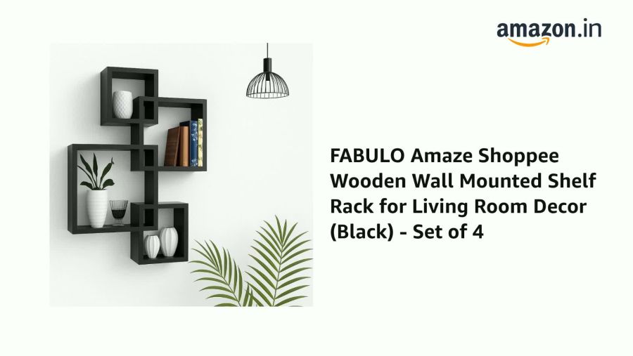 FABULO Amaze Shoppee Wooden Wall Mounted Shelf Rack for Living Room Decor (Black) - Set of 4