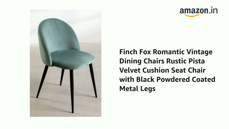 Finch Fox Romantic Vintage Dining Chairs Rustic Pista Velvet Cushion Seat Chair with Black Powdered Coated Metal Legs