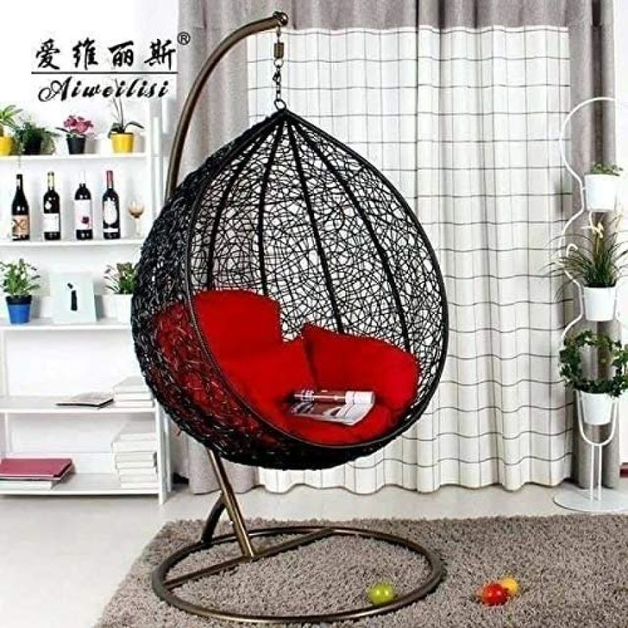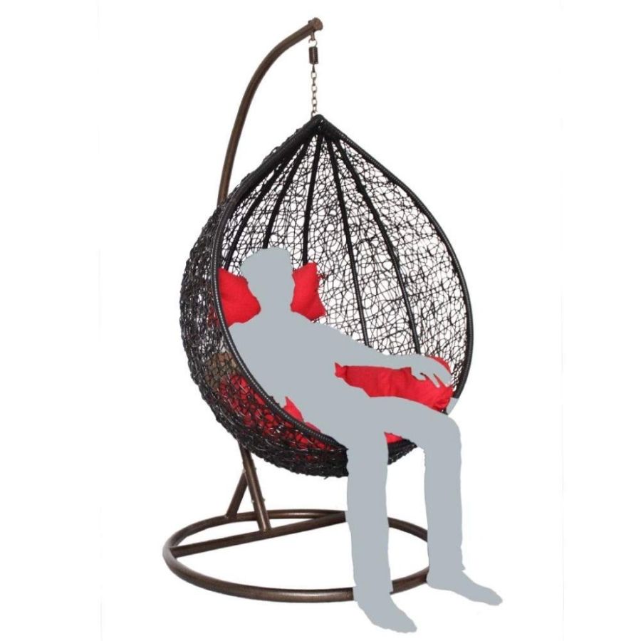 Furniture Kart Wrought Iron Single Seater Swing Chair with Stand, Cushion (Large, Black), 61 Centimeters