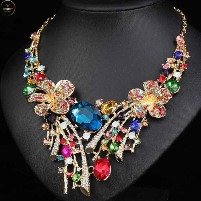 Elegant Design: This Gehney necklace & earrings set showcases a stunning arrangement of blue gemstones and AD zircon, making it a statement piece for women. Perfect for adding glamour to any outfit.