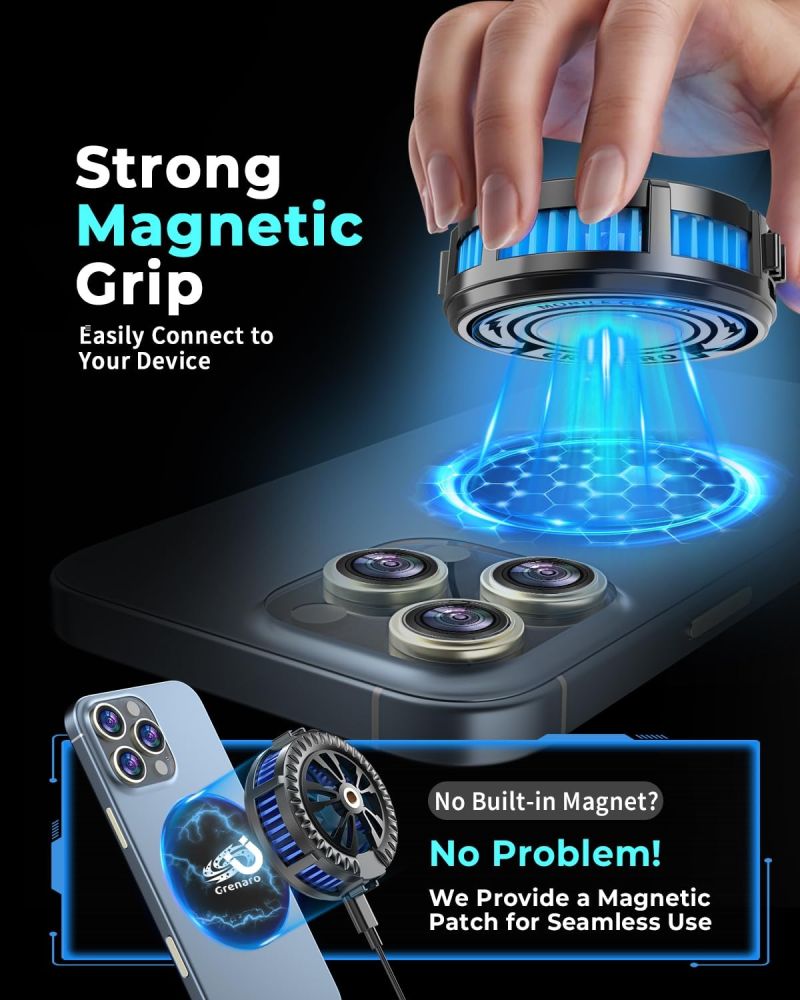 [ Magnetic Design ] -Our mobile cooler features a magnetic design that easily attaches to any device with magnetic capability, providing you more flexibility while gaming. No magnetic function? No worries! We include magnetic stickers so you can stick them on any device, making it compatible with our phone cooler.