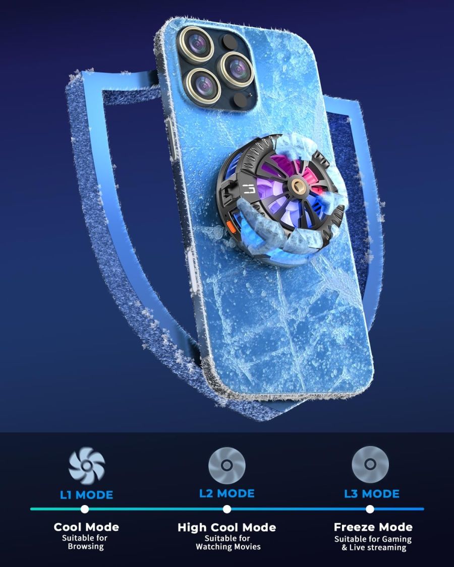 [ Digital Display ] - Our mobile cooler for gaming features a digital display that shows the current mode and temperature. Easily choose between cooling levels I, II, and III based on your device's needs, enhancing the performance of your phone cooler.