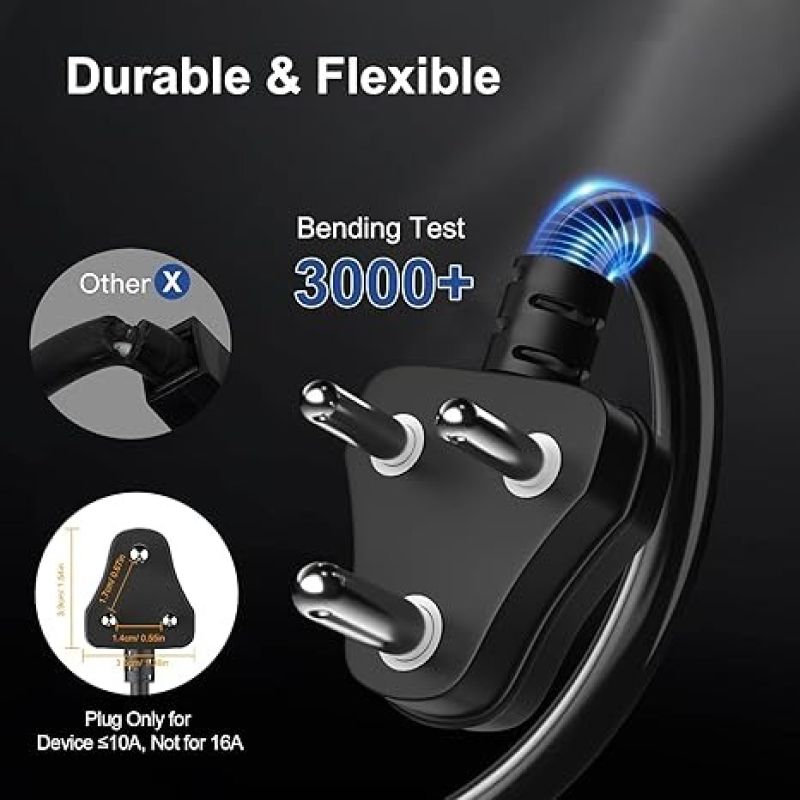 【10M Heavy-duty Power Cord】--10 meters extension cord has a more adequate extension range and more easier access to a power outlet, meeting most of your needs. Perfect for your phone charger, vacuum cleaner and other household electronics that need a little extra length.