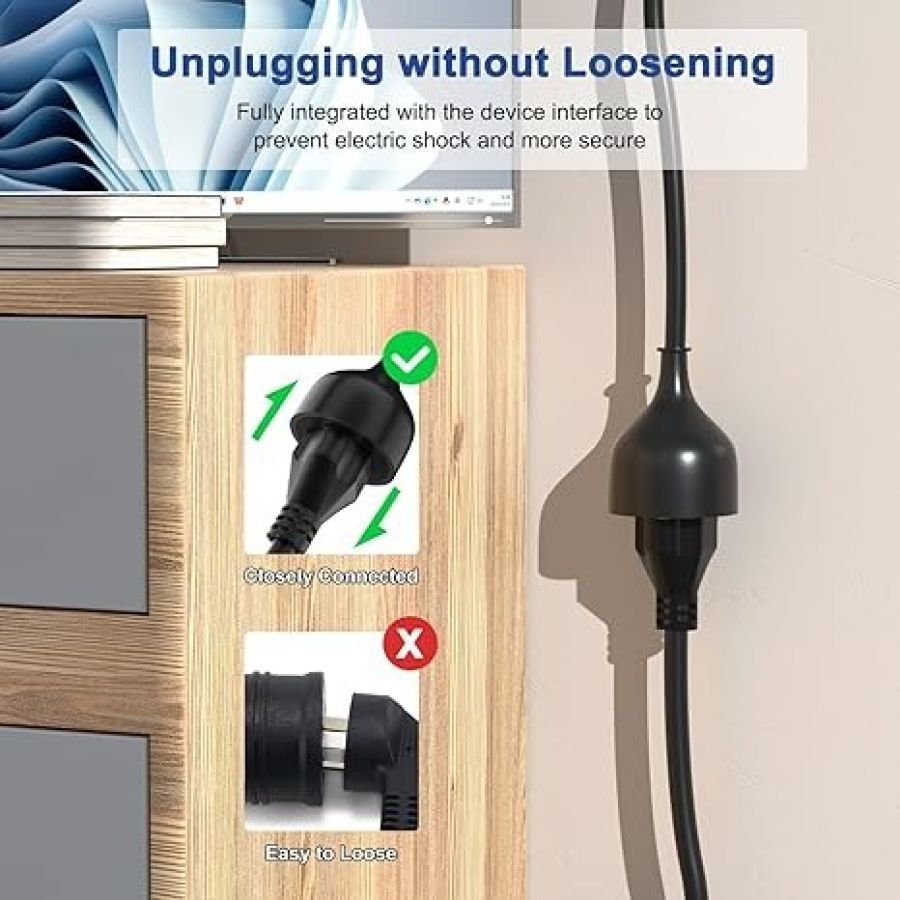 【Durable & Safety】--Made of soft and elastic material, which protects the universal extension power from accidently bending or breaking. Smooth and firm connection makes it easier for you to connect to the plug without fear of shaking and dropping when you extend cord.