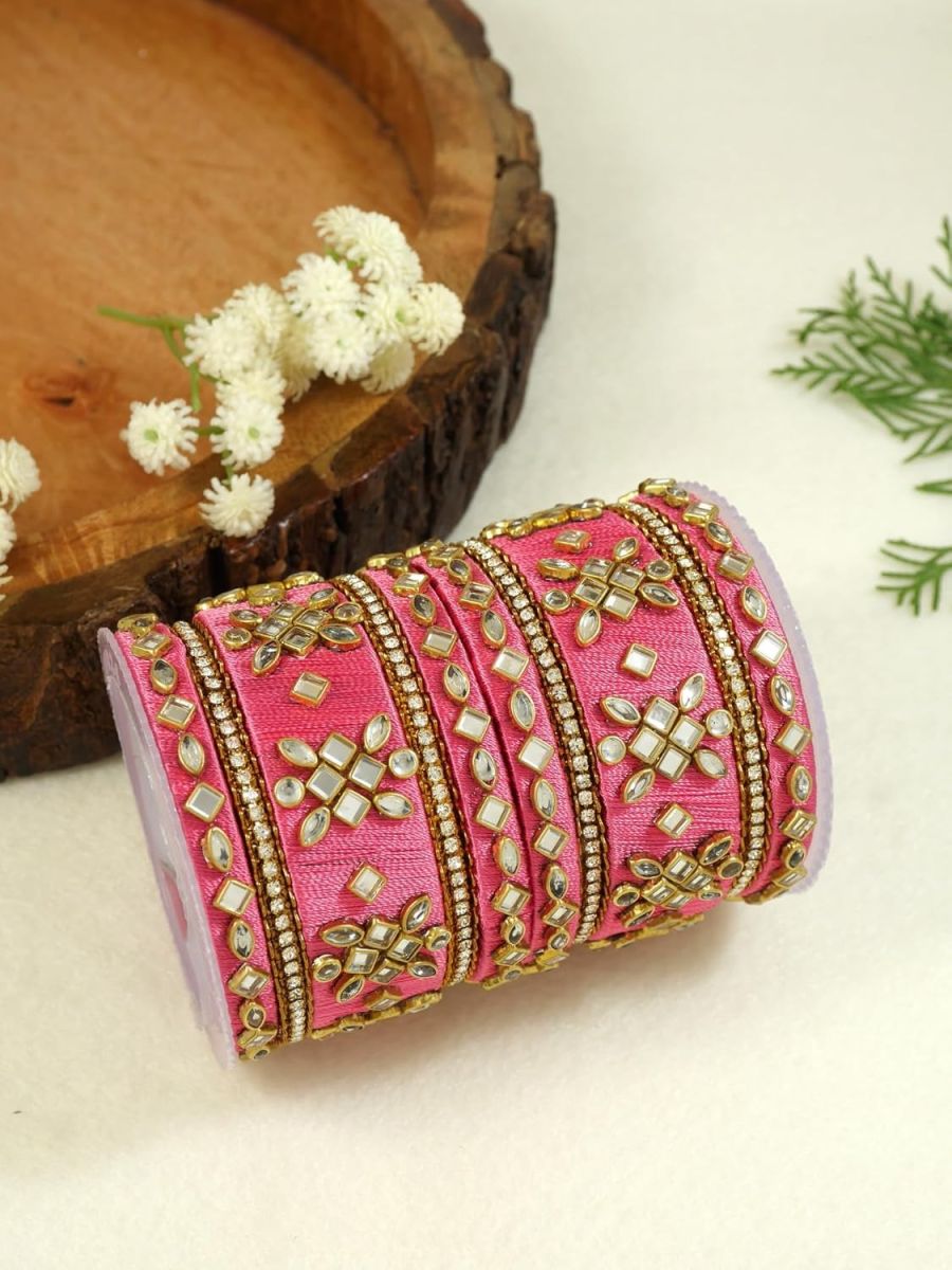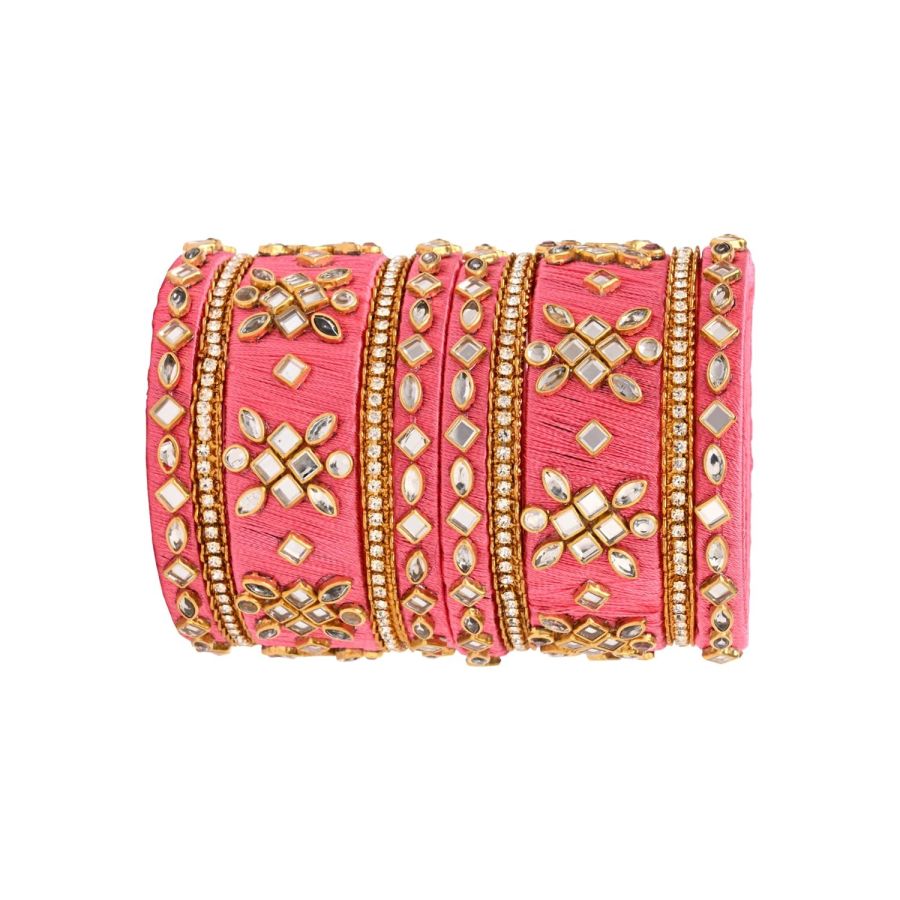I Jewels Gold Plated Traditional Silk Thread Embellishments Bangles Chuda Bangle Set for Bridal/Women