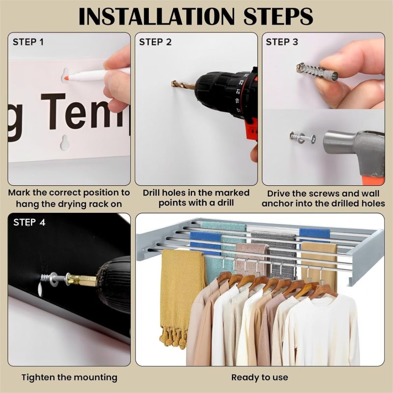 ????????????????-???????????????????????????????????? ????????????????: The rack’s five stainless steel rods resist rust, provide ample space, and ensure easy airflow for quick, efficient drying. This makes it a perfect choice for a dress drying stand for clothes.