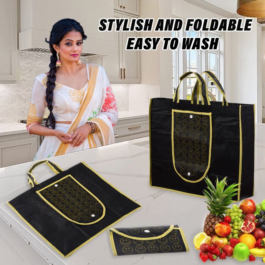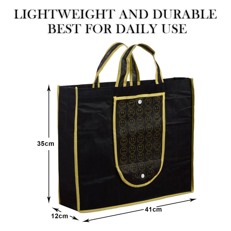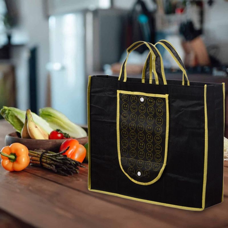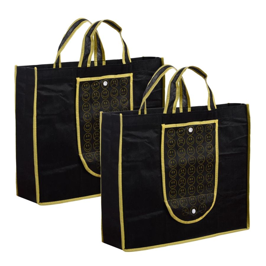 Kuber Industries Grocery Hand Bag | Shopping Bag for Vegetables | Foldable Hand Bag with Front Pocket & Handle | Pack of 2 | Yellow