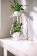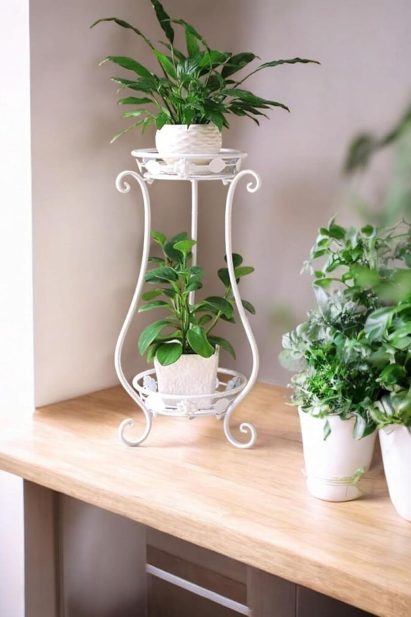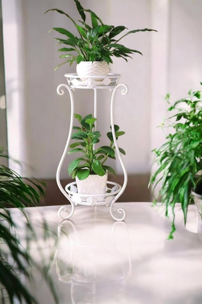 Kundi Indoor Outdoor Wrought Iron Plant Stand, Tall Metal Iron Flower Pot Stand, 11.4 x 9.6 x 24.4 inches White (Double Pot White)