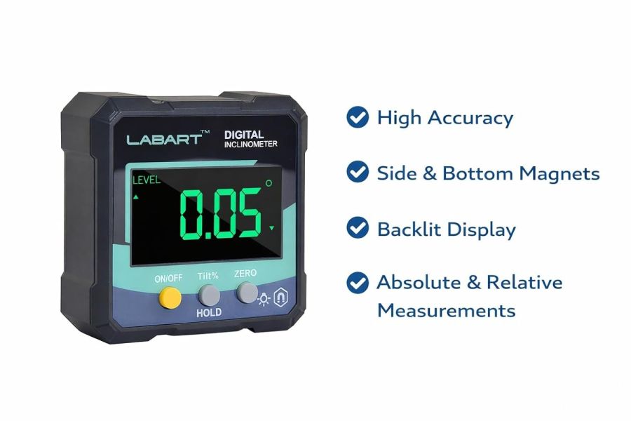 LABART Mini Digital Protractor with Magnetic Base Inclinometer Compact Angle Finder Portable Angular Measurer Digital Meter