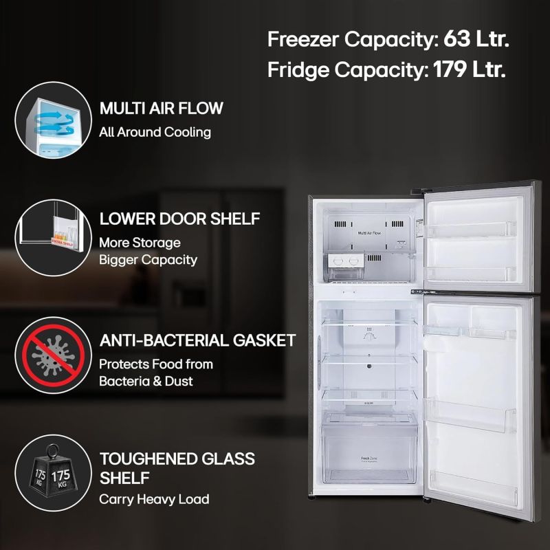 LG 242 L 3 Star Smart Inverter Frost-Free Double Door Refrigerator (GL-I292RPZX, Shiny Steel, Door Cooling+)