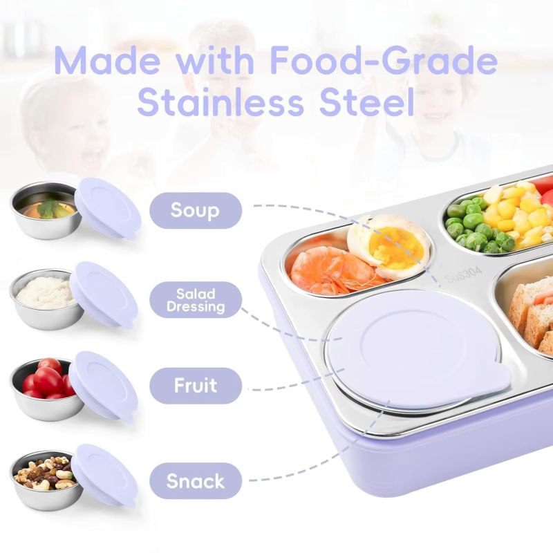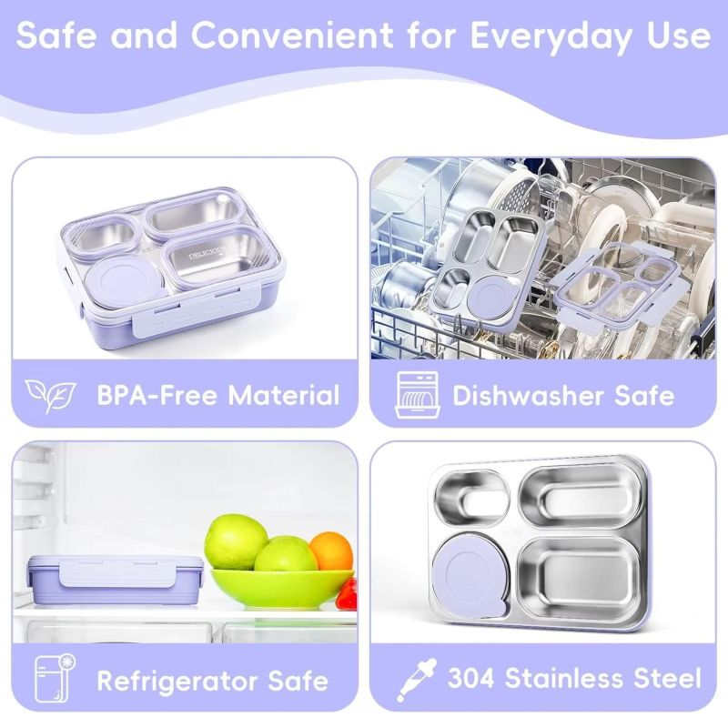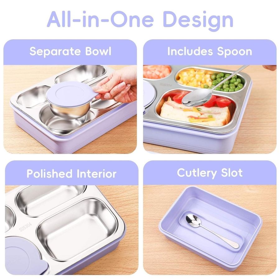 Four Compartment Leakproof Bento Lunch Box: The SYJBUH stainless steel lunch box for office use features four compartments for perfect portion control and mess-free meals great for school, picnic, or travel.