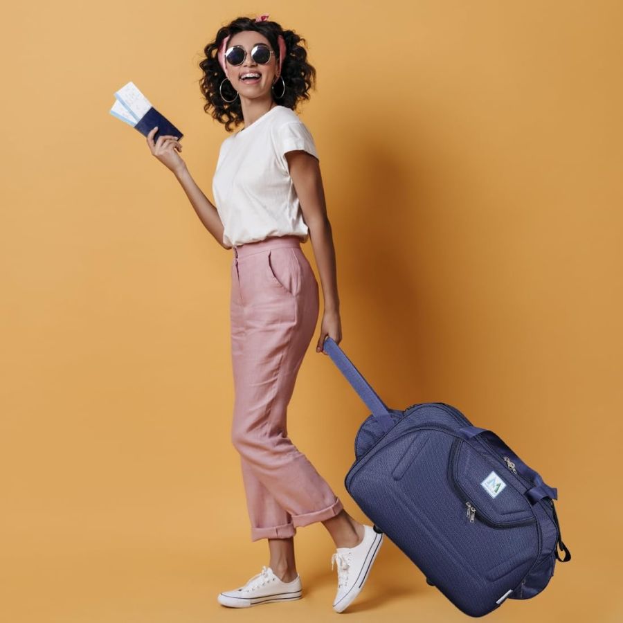 M MEDLER Epoch Nylon 55 litres Waterproof Strolley Duffle Bag- 2 Wheels - Luggage Bag - (Navy Blue)
