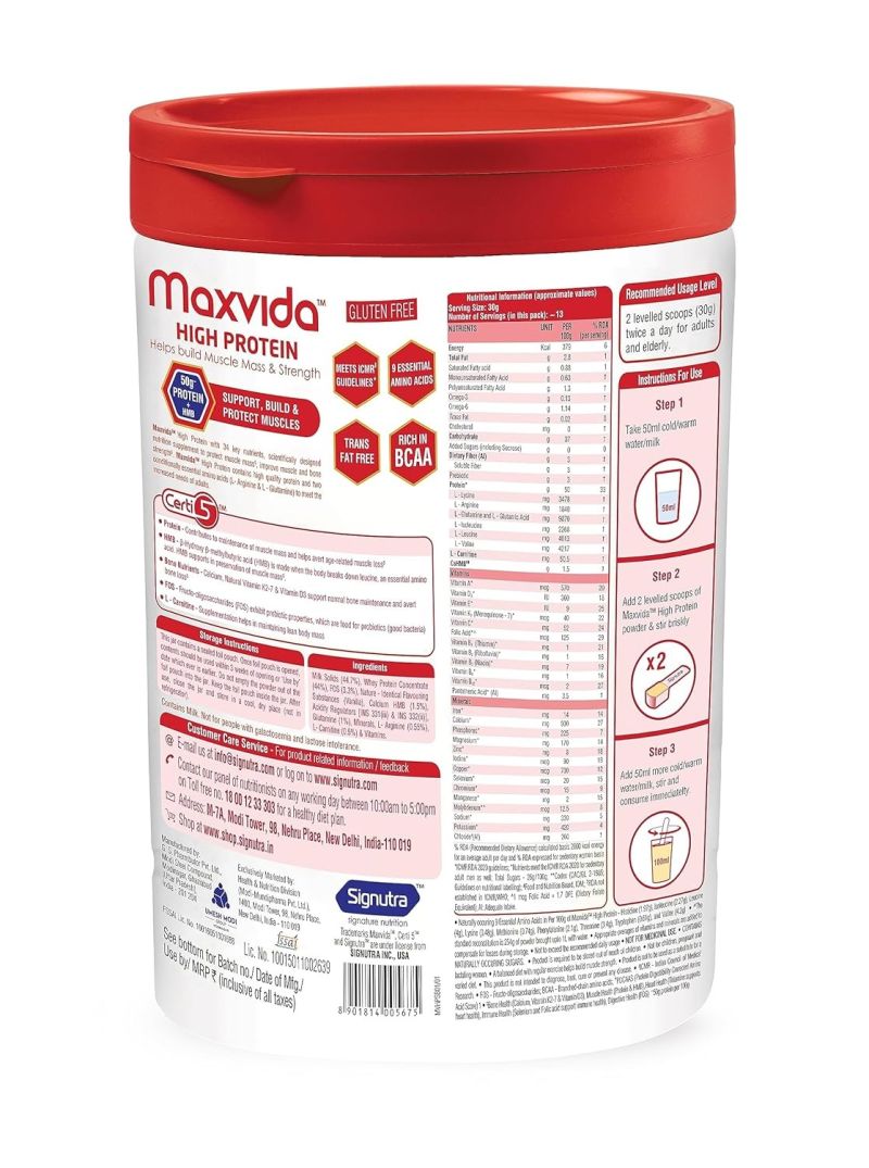 Maxvida High Protein to help build Muscle mass and strength in Adults & Elderly (400g, Vanilla Flavored)