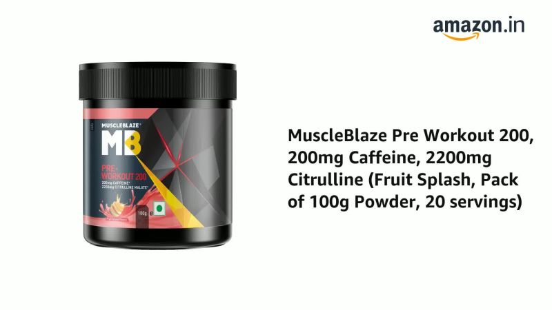 MuscleBlaze Pre Workout 200 Powder, Fruit Splash (16 servings, 100g) | 200mg Caffeine, 2200mg Citrulline