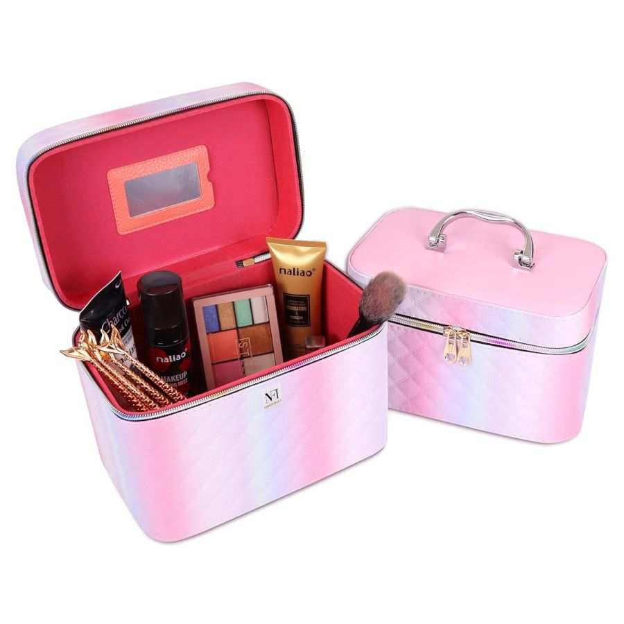 - Multifunction: Large beauty case is the perfect way to transport, store and protect your treasured makeup and cosmetic collection. Organize your daily cosmetics, skin-care products, makeup and brushes, eye shadow, lipstick, liquids, etc.