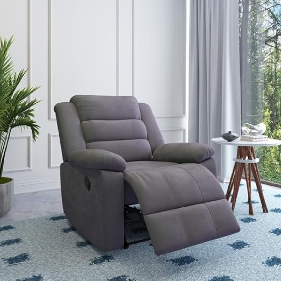 Nilkamal Sierra Velvet Fabric Manual Recliner | 1 Seater Sofa | Single Sofa Recliner | 1 Seater Chair Sofa |Finish Color - Brown