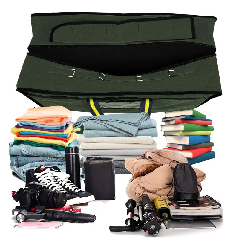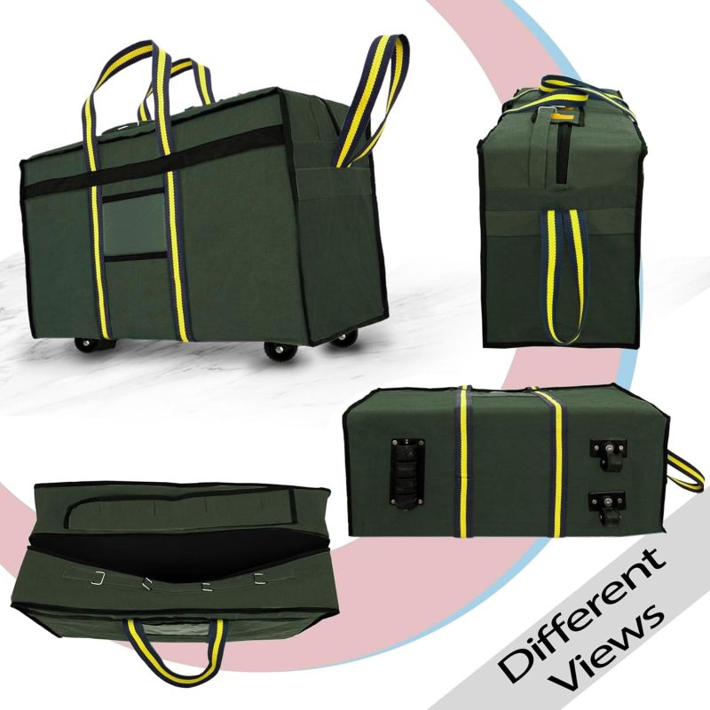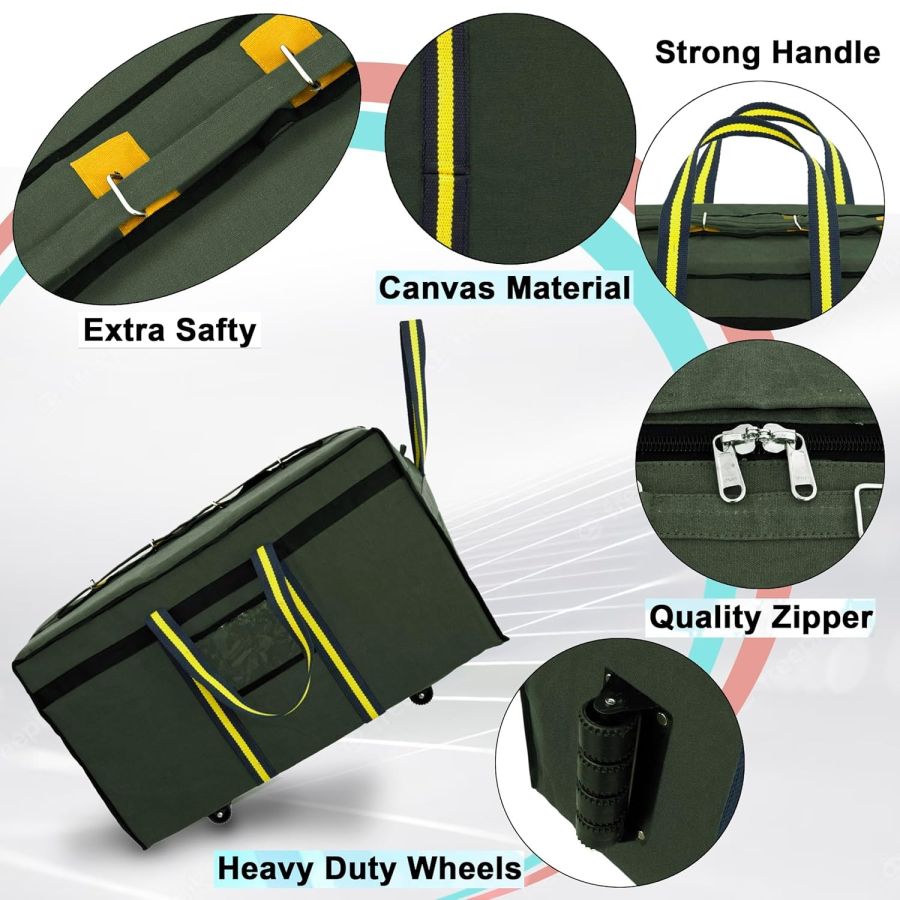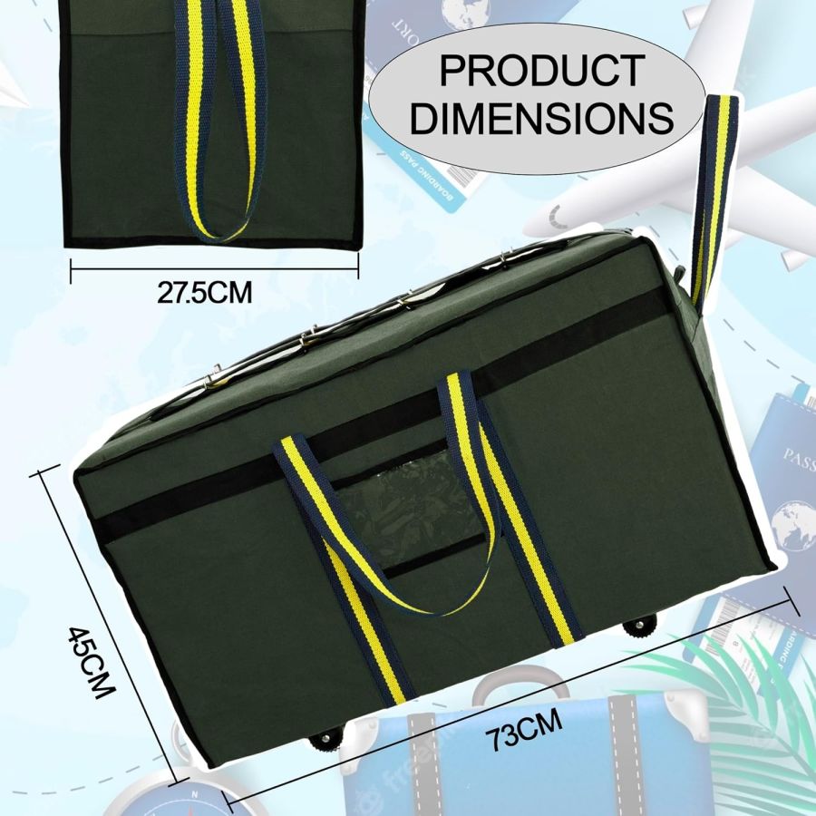 NISUN Canvas 90 Liter Large Strong Travel Luggage Duffel Storage Bag with Six Wheels & Front Transparent Pocket (Blue,73 x 27.5 x 45 cm) (Green)