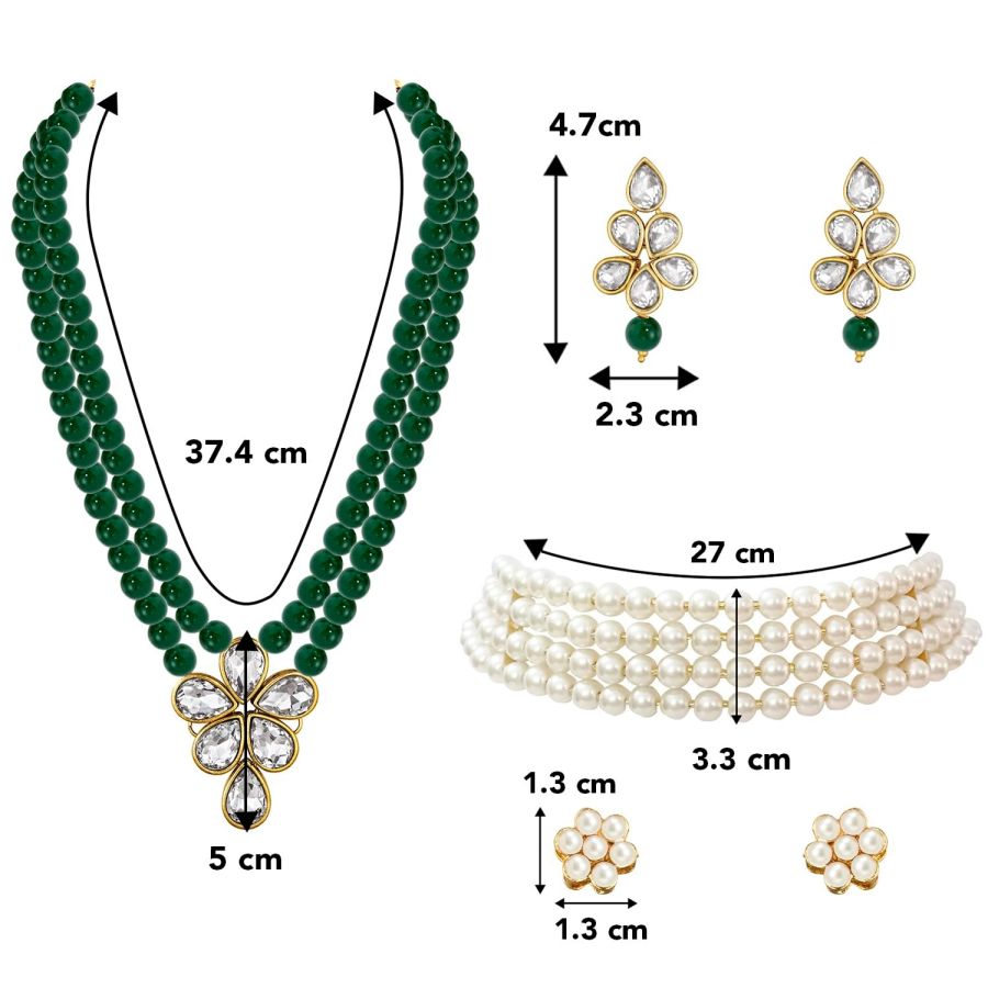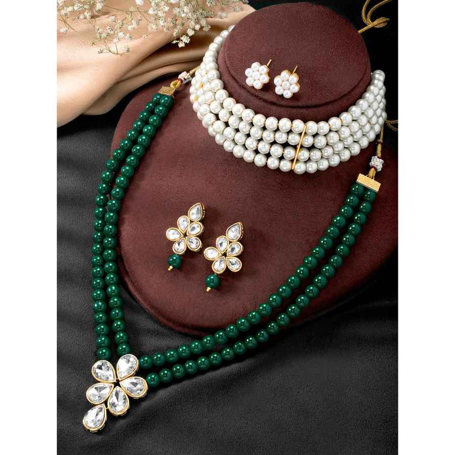 Peora Crystal Faux Pearl Kundan Necklace & Jewellery Set Gift for Women