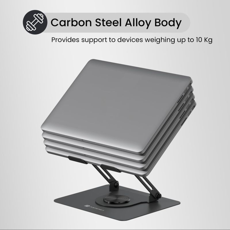 Stable and Durable: Made with carbon steel alloy body, this laptop stand is sturdy and offers long-term use. It can bear weight up to 10 kg, offering reliable support to your devices.