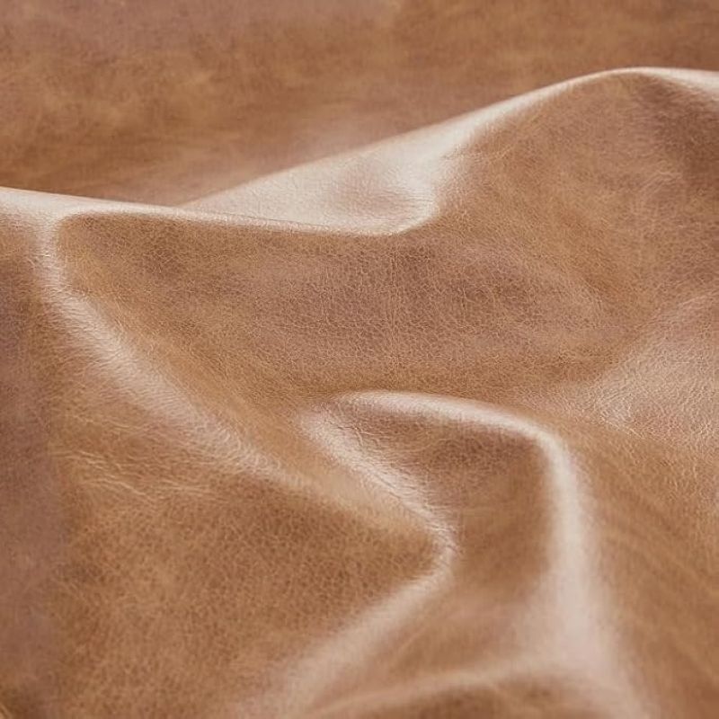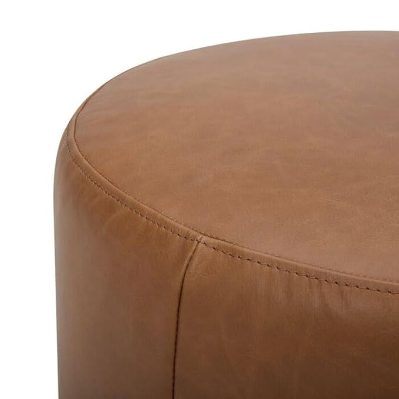 PREDELLA Tufted Ottoman Coffee Table, Round, Brown Leather Top, Traditional Style, 63D x 63W x 40H cm