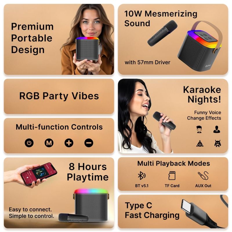 Immersive 10W Sound Output: pTron Fusion Tunes Mini Karaoke Bluetooth Speaker delivers rich bass, balanced midranges & crisp highs for an exceptional sound experience.