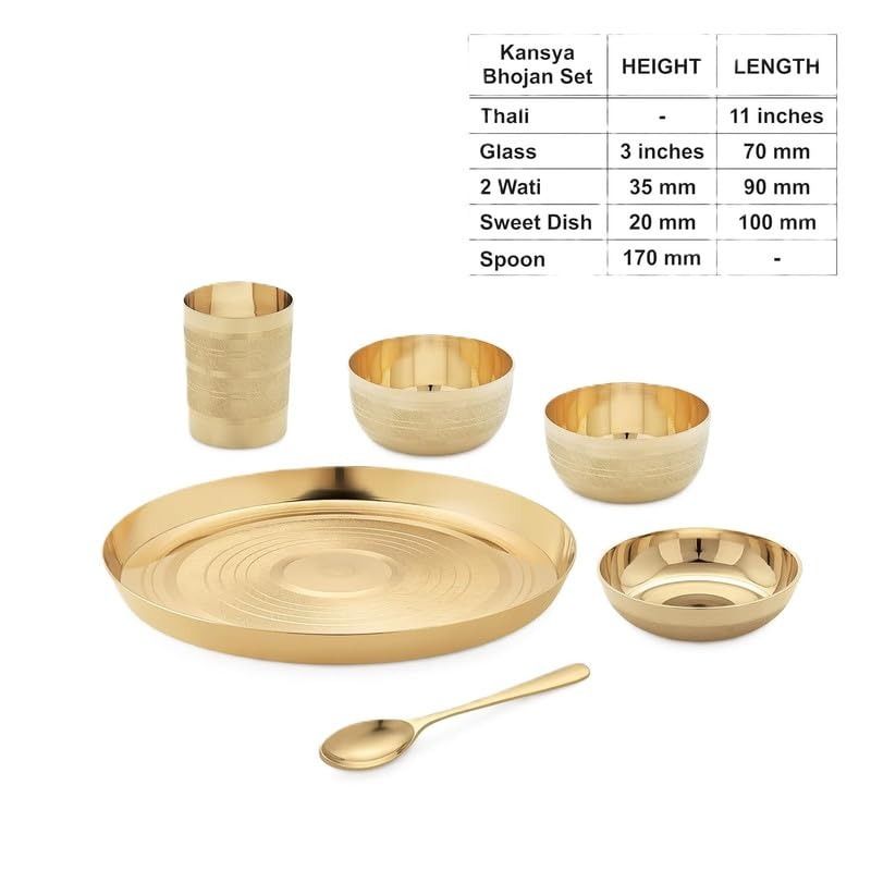 RBHMC BRONZE MASTER Kansa Bronze Finish Solid Bhojan Dinner Thali Set of 6 Pieces 10 Inch (Weight- 1400 Gm)