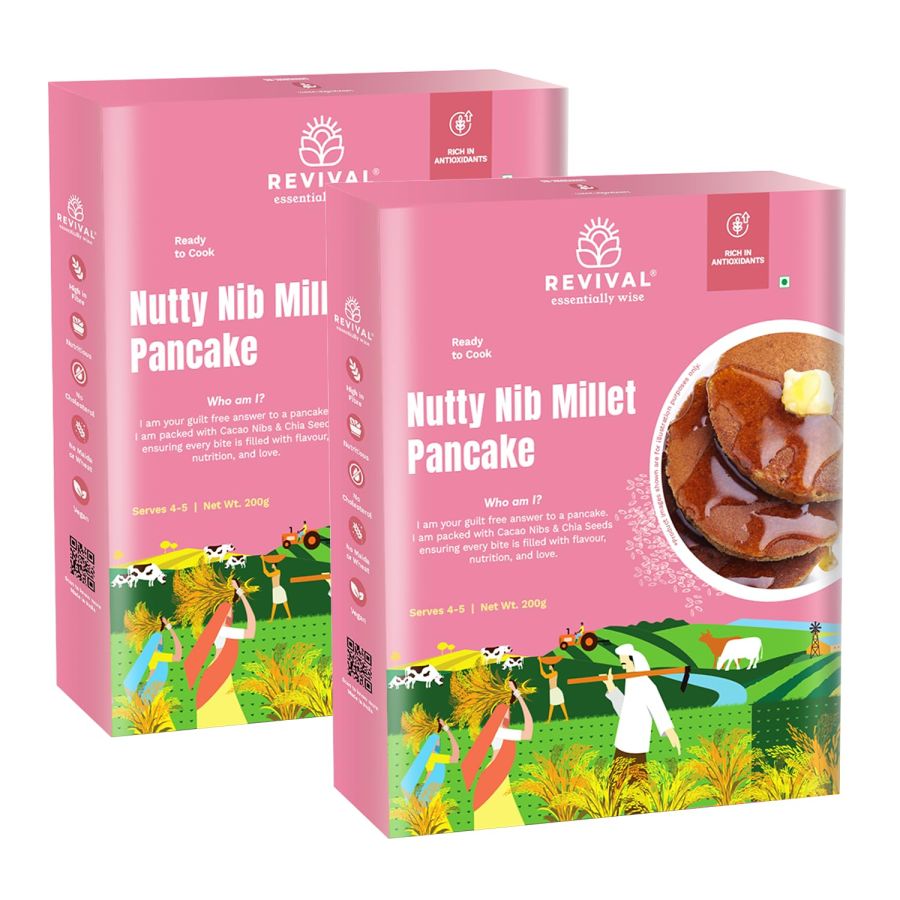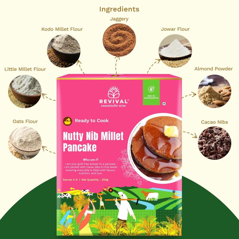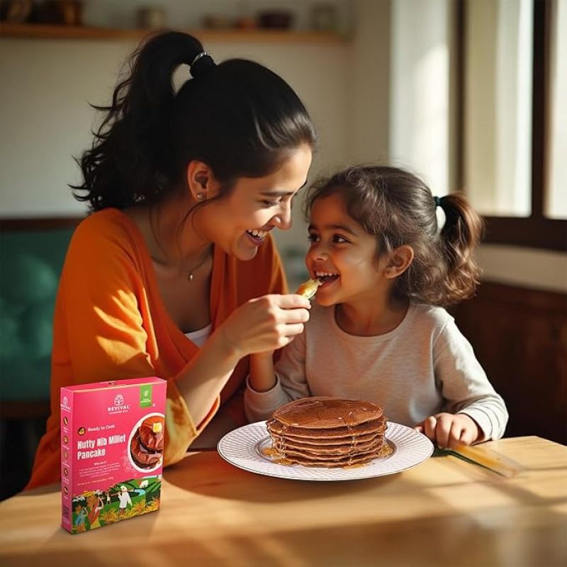 Healthy Millet Pancakes with a Nutty Crunch – Enjoy soft, fluffy pancakes made from nutrient-rich millets and crunchy nutty nibs for a delicious and nourishing start to your day.
