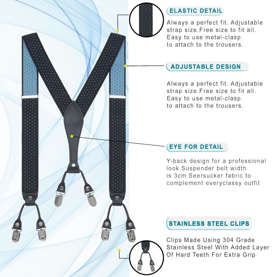 Riyasat Men's Suspender Wide Adjustable and Elastic Braces Y Shape 6 Metal Clips, Elastic Straps with Very Strong clips -Heavy Duty