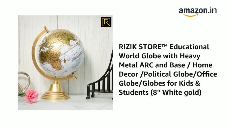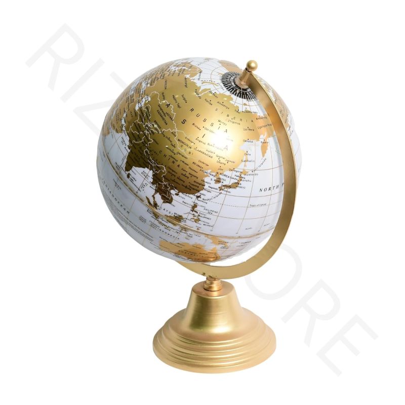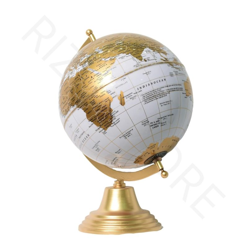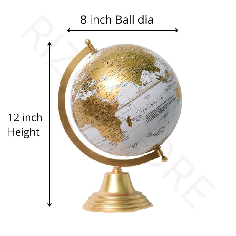 RIZIK STORE™ Educational World Globe with Heavy Metal ARC and Base/Home Decor/Political Globe/Office/Globes for Kids & Students (8" White)