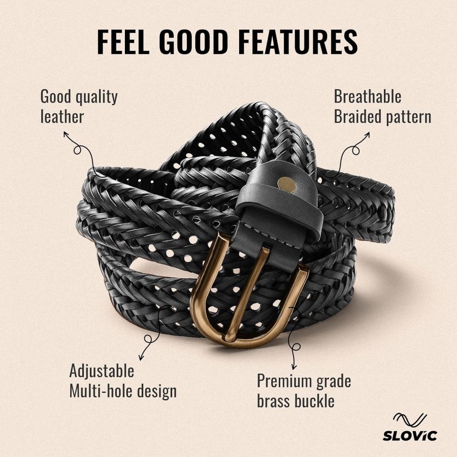 SLOVIC Belts for Men Leather | Premium Woven Design | Multi-Hole Adjustable Belt | Ideal for Jeans, Trousers & Chinos | Stylish Gift for Men