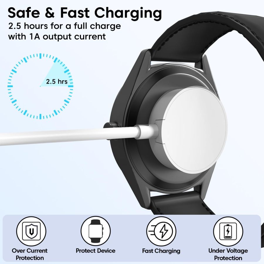 ✅【Durable & Portable Design】: The 3.3ft (100cm) long charging cable offers optimal flexibility and convenience, allowing you to charge your smartwatch comfortably at home, in the office, or even while traveling. Its compact and lightweight build makes it easy to carry in your bag, pocket, or travel case, ensuring you stay powered up wherever you go.