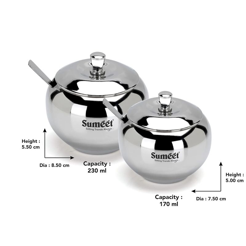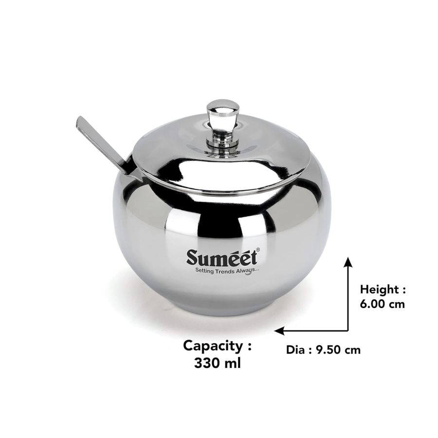 Sumeet Stainless Steel Ghee and Oil Pot, Storage Container with Spoon for Kitchen, 8.5cm Dia, 230ML -(Pack of 1), Silver