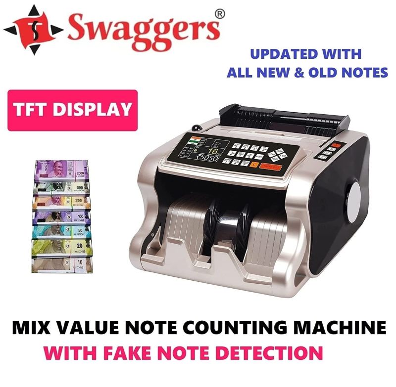 Swaggers Loose Mix Note Value Counting Machine for Indian Currency(10,20,50,100,200,500,2000) with Fake Note Detector Heavy Duty Value Money Counting Machine 1 Year Warranty