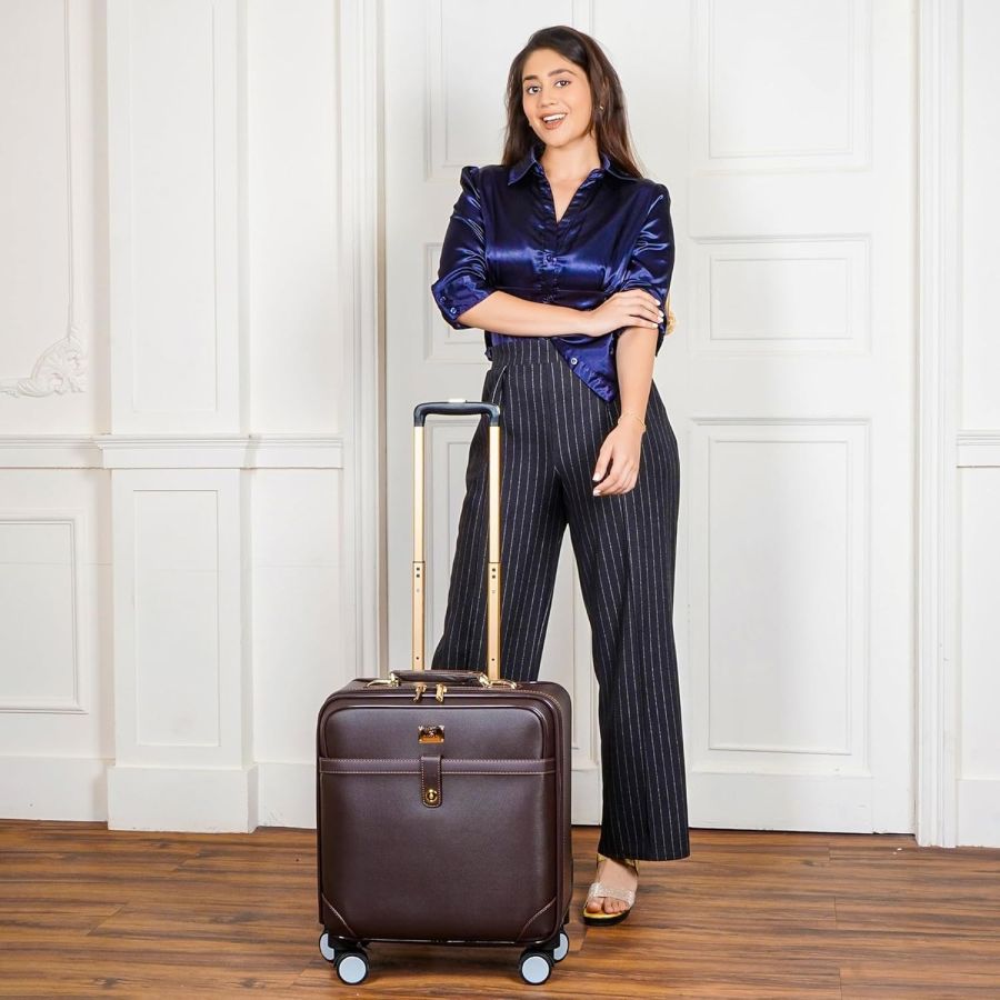 THE CLOWNFISH Luxury Cabin Luggage Suitcase | Trolley Bag | Faux Leather Cabin Bag for Travel | Small Size Soft Case Overnighter Travel Bag | Laptop Trolley Bag