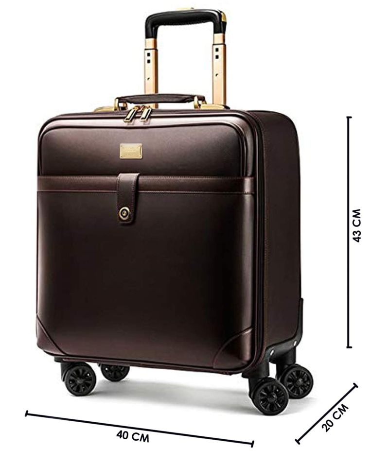 - ✅ FAUX LEATHER CONSTRUCTION: Crafted with premium faux leather material, The Clownfish overnighter suitcase is both luxurious and durable. The 18-inch size is perfect for carry-on luggage. Complete with an aluminium telescopic handle and TSA lock, this Brown roller case is perfect for all your travel needs.